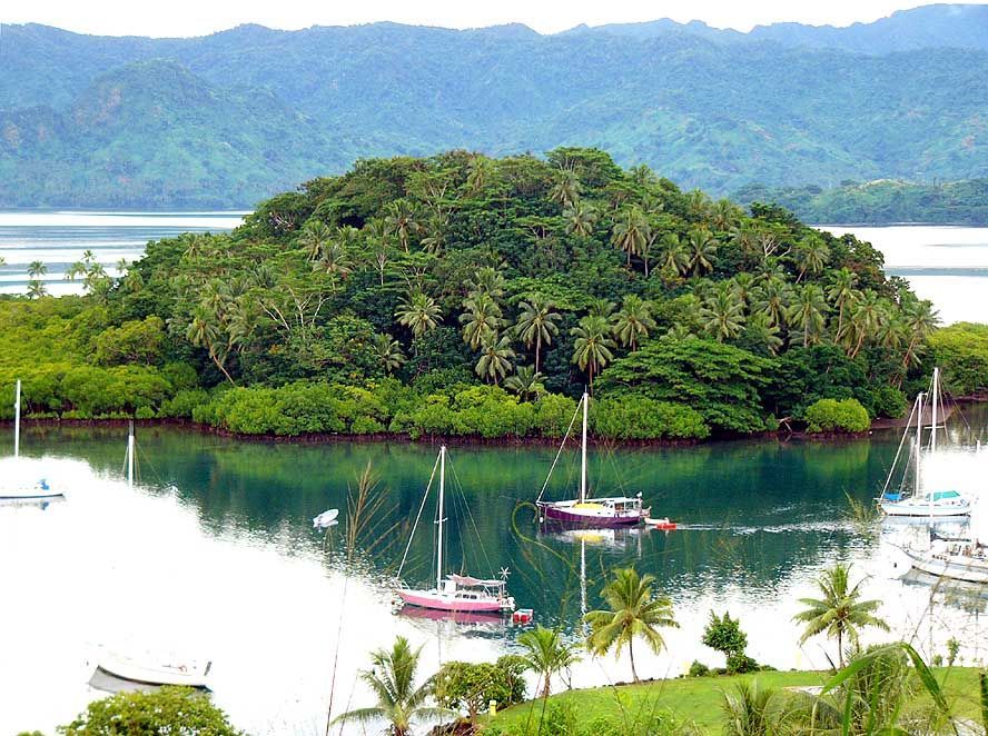 On most islands we took the small boat to go ashore. Here is Nemani, the translator I hired and a crewman of the Vunilagi.